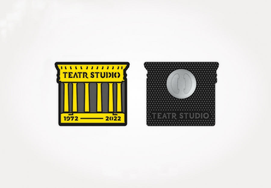 Ręcznie malowana przypinka z fasadą teatru STUDIO, przygotowany przez łódzką pracownię Pinswear w ramach obchodów 50-lecia STUDIO. Projekt graficzny: Kuki Krzysztof Iwański.