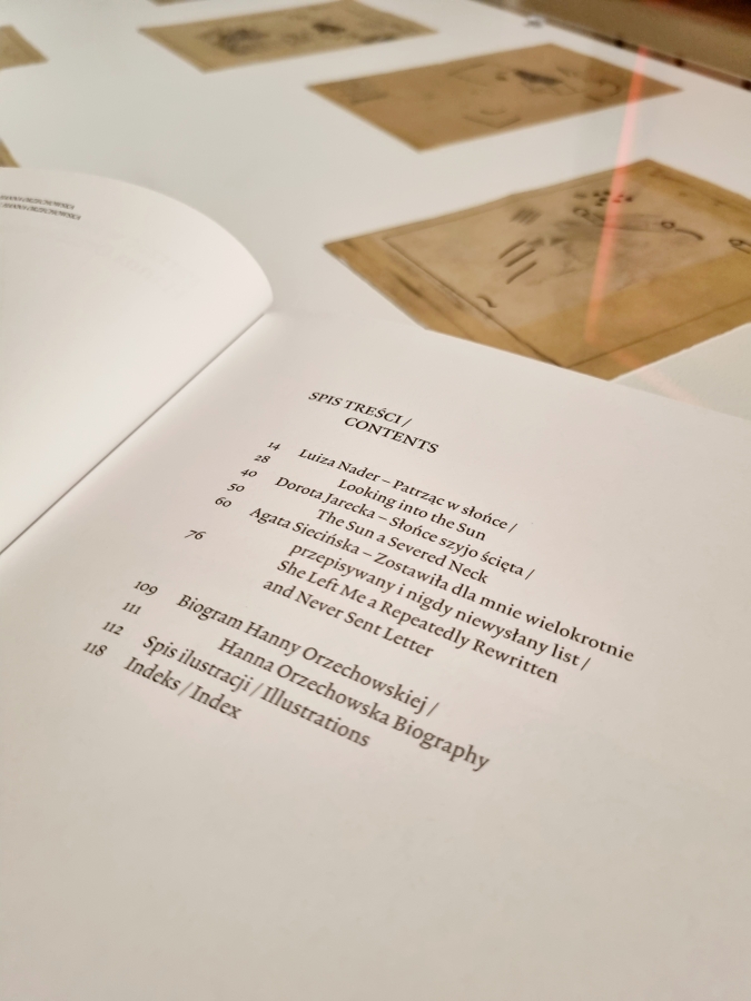 Publikacja towarzyszy wystawie „Patrząc w słońce. Hanna Orzechowska” trwającej w Galerii Studio od 24 września do 17 listopada 2024 roku i poświęcona jest interpretacji twórczości Hanny Orzechowskiej. Zawiera eseje ukazujące sztukę i biografię Hanny Orzechowskiej z różnych perspektyw. Są to: esej kuratorki wystawy Luizy Nader „Patrząc w słońce”, tekst córki artystki Agaty Siecińskiej „Zostawiła dla mnie wielokrotnie przepisywany i nigdy niewysłany list” oraz Doroty Jareckiej „Słońce szyjo ścięta”. Książka jest bogato ilustrowana, wszystkie teksty są tłumaczone na język angielski.
